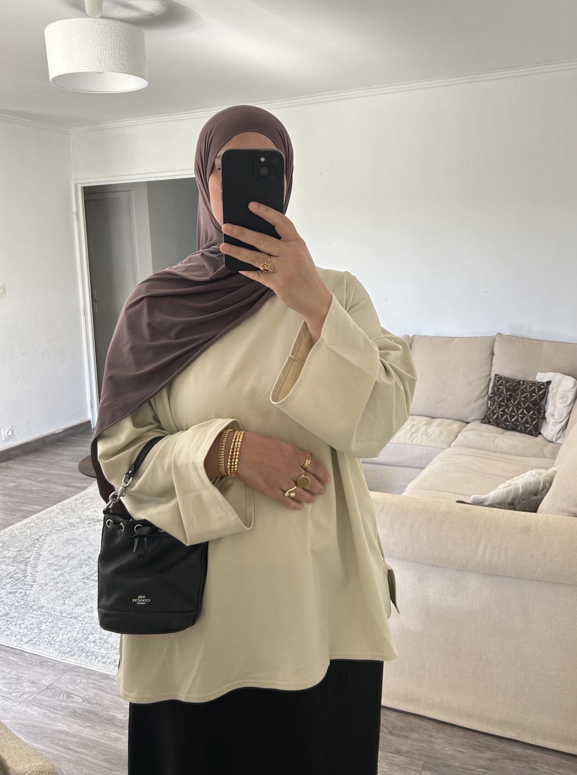 tee shirt manche longue couleur beige à la coupe large et ample, pensé pour allier confort.